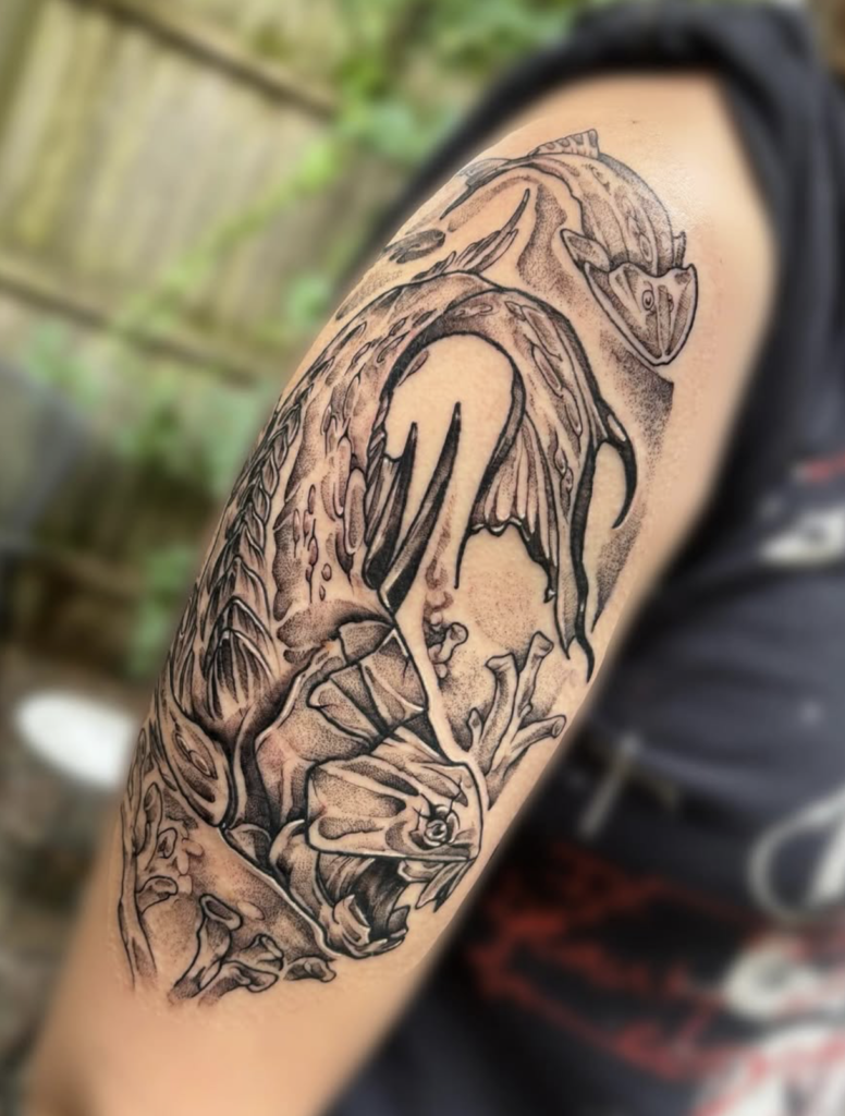 Specializing in strong, readable designs — from clean linework to expressive black and grey — Big Jaz approaches every piece with intention and authenticity. He’s respected not just for his skill, but for keeping it real in an industry that demands both grit and growth.