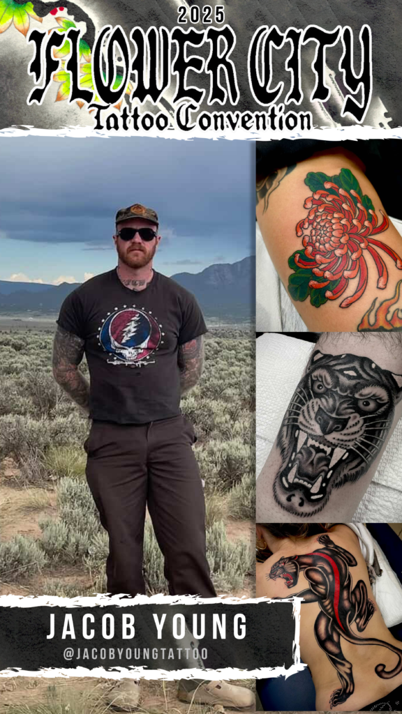 Jake Parsons is a nationally recognized tattoo artist best known for his appearance on Ink Master, where his technical precision and creative versatility set him apart. With over a decade of experience, Jake has built a reputation for clean, powerful tattoos across a range of styles — from bold traditional to detailed realism. Known for his deep understanding of tattoo fundamentals and commitment to craftsmanship, Jake not only produces high-quality tattoos but also shares his knowledge through professional seminars, helping elevate the next generation of artists. Whether he’s behind the machine or mentoring others, Jake brings intensity, skill, and vision to everything he does.