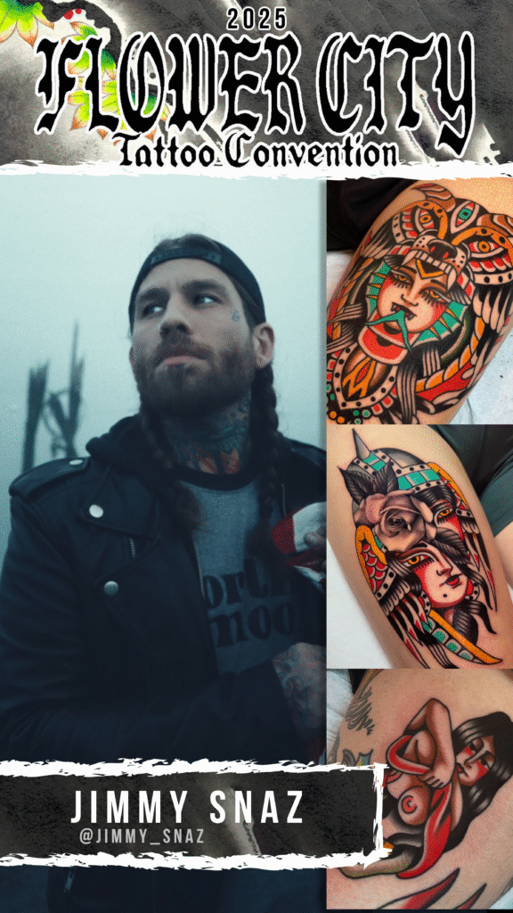 Jimmy Snaz, born James Mackenzie in Boston, Massachusetts, is a celebrated tattoo artist known for his bold, graphic, and instantly recognizable style. He gained national attention through his appearances on Ink Master Seasons 11 and 13, where he showcased his versatility and commitment to the craft. In Season 13, Ink Master: Turf War, Jimmy advanced to the finals. However, due to the COVID-19 pandemic, the live finale was canceled, and no official winner was announced. Nevertheless, Jimmy’s performance earned him a share of the prize among the top three finalists.