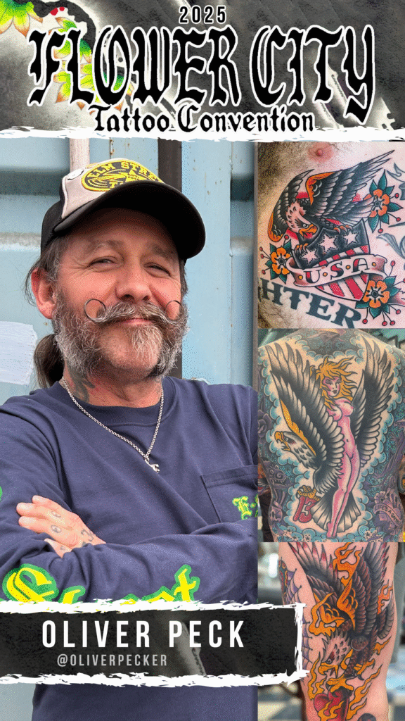 Whether he’s tattooing on the road, working in his shops, or celebrating the culture that raised him, Oliver Peck remains a living legend and a true steward of the traditional tattoo style.
