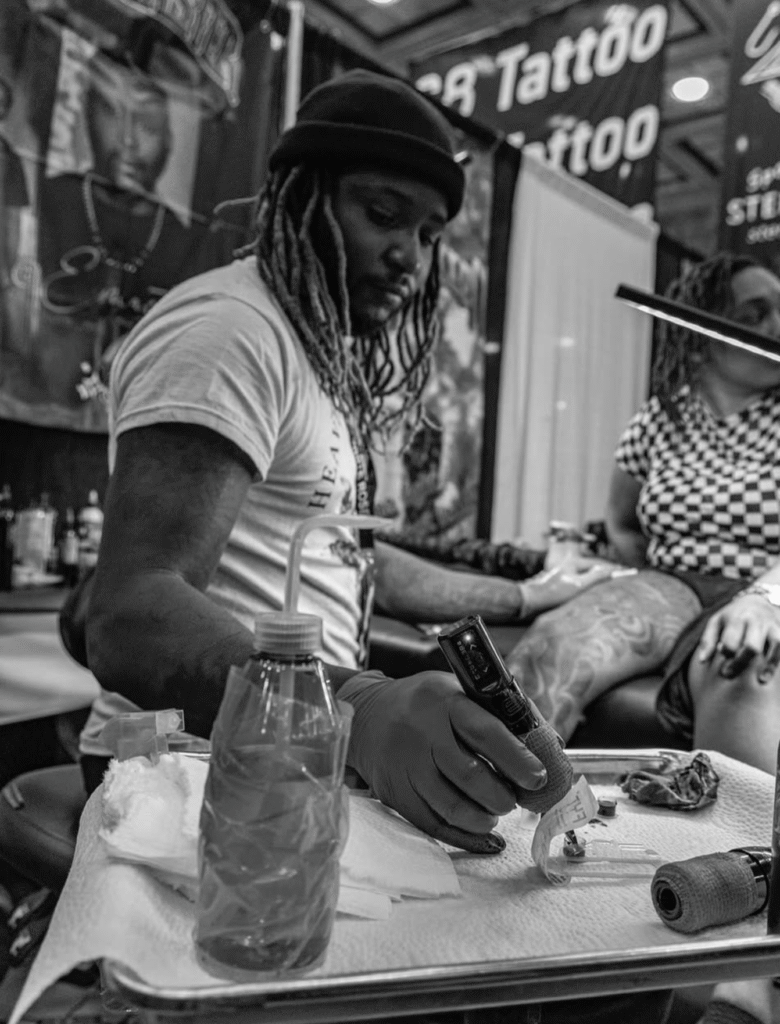 Specializing in strong, readable designs — from clean linework to expressive black and grey — Big Jaz approaches every piece with intention and authenticity. He’s respected not just for his skill, but for keeping it real in an industry that demands both grit and growth.