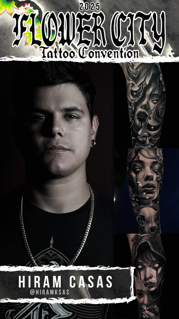 A standout competitor on Ink Master, Hiram made his mark across multiple seasons, showcasing his versatility, professionalism, and composure under pressure. His performance on the national stage solidified his status as one of the top black and grey artists in the game.