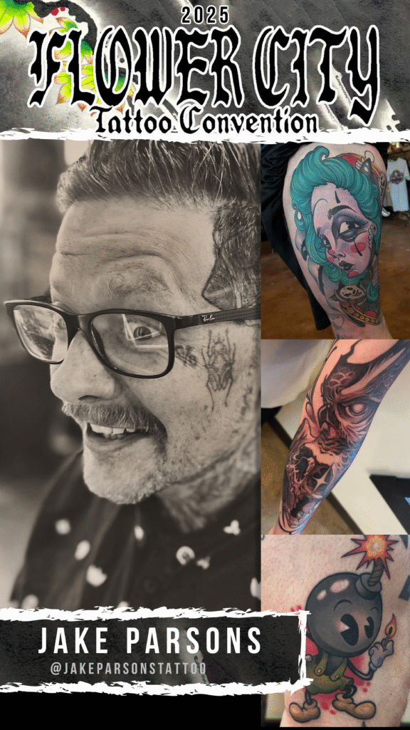 Jake Parsons is a nationally recognized tattoo artist best known for his appearance on Ink Master, where his technical precision and creative versatility set him apart. With over a decade of experience, Jake has built a reputation for clean, powerful tattoos across a range of styles — from bold traditional to detailed realism. Known for his deep understanding of tattoo fundamentals and commitment to craftsmanship, Jake not only produces high-quality tattoos but also shares his knowledge through professional seminars, helping elevate the next generation of artists. Whether he’s behind the machine or mentoring others, Jake brings intensity, skill, and vision to everything he does.