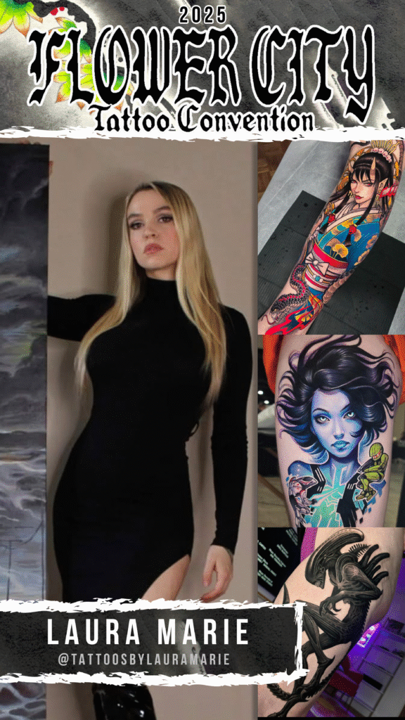 Laura Marie, a tattoo artist from Geneseo, New York, rose to prominence after winning Season 12 of Ink Master, titled “Battle of the Sexes,” in 2019. As the second female winner in the show’s history, she captivated judges with her masterful traditional Japanese backpiece depicting Raijin, the Japanese god of thunder. Her victory earned her a $100,000 prize and a feature in Inked magazine . Before her television success, Laura pursued studies in animation and game design at the Rochester Institute of Technology but found her true calling in tattooing. Beyond tattooing, Laura engages in various artistic endeavors, including digital art and merchandise design .